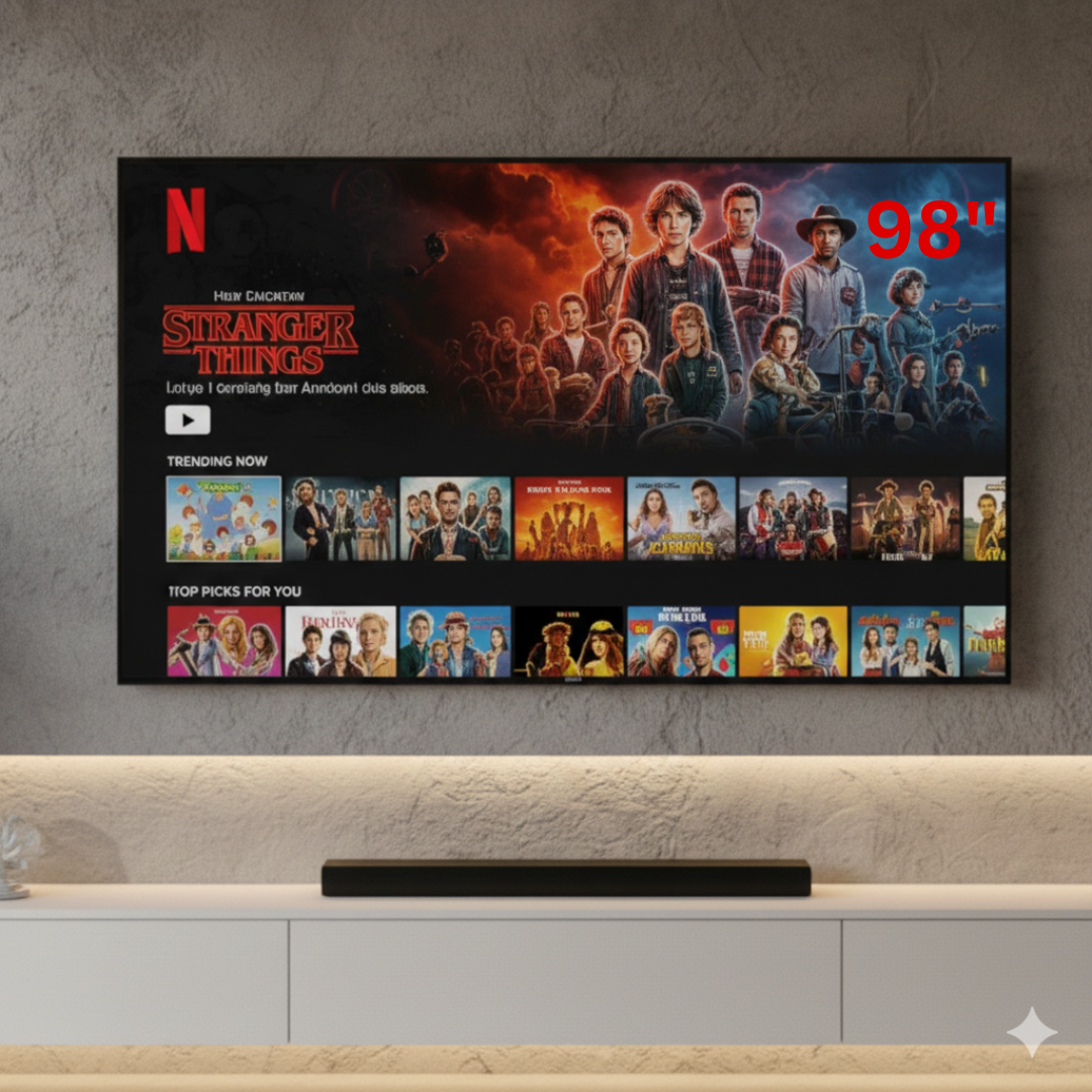 Bring the big-screen experience home with this 98-inch TV, perfect for movies, gaming, and sports. With a massive display and sleek design, it turns any living room into a cinematic space.